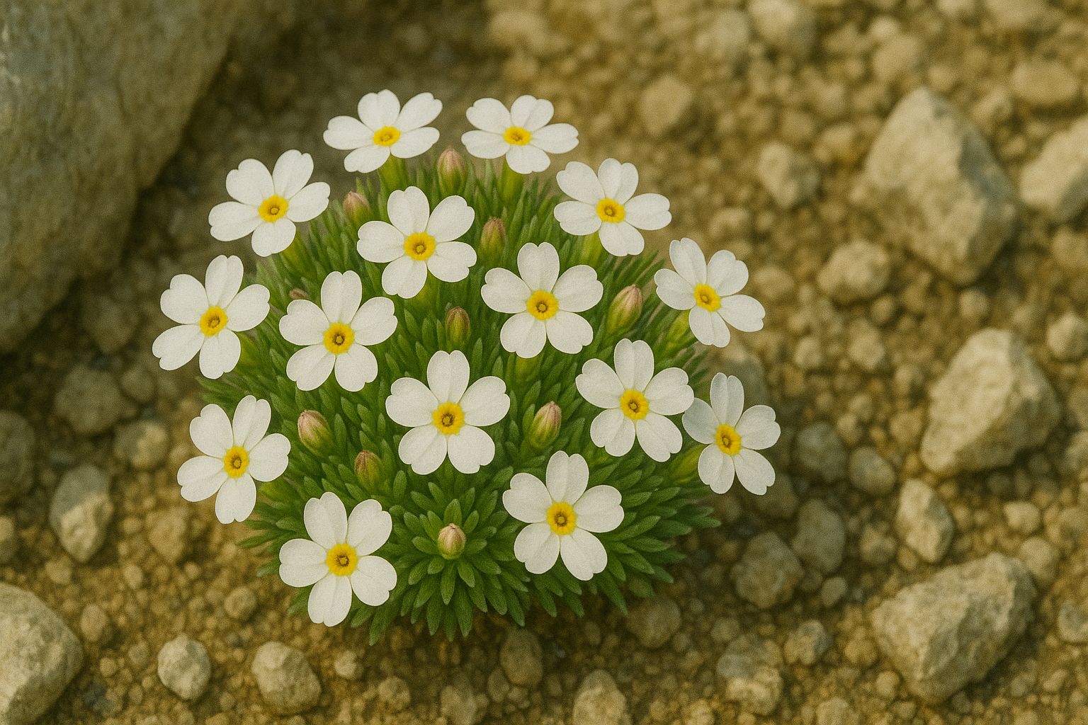 Descrizione: Minuscola pianta alpina (1–3 cm) che forma cuscinetti compatti e porta fiori bianchi o leggermente rosati. Cresce su rupi fresche oltre i 2300 m e fiorisce tra giugno e luglio.