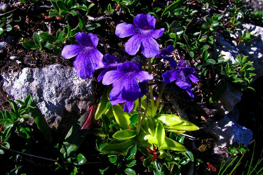 Descrizione: Piccola carnivora alta fino a 10 cm, con foglie carnose e vischiose che catturano piccoli insetti. Ha un fiore viola e cresce su pareti umide e nutrienti povere tra 700 e 2400 m. Fiorisce tra maggio e giugno.