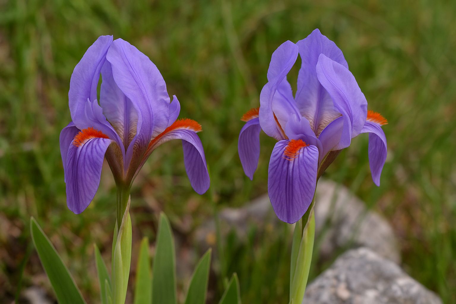 Descrizione: Perenne alta fino a 65 cm, con rizoma nodoso da cui emergono ogni anno foglie e scapi fiorali. I fiori, grandi e di colore viola scuro con venature evidenti e una linea centrale di peli sulle lacinie esterne, compaiono tra maggio e giugno. Vive nei pascoli montani.